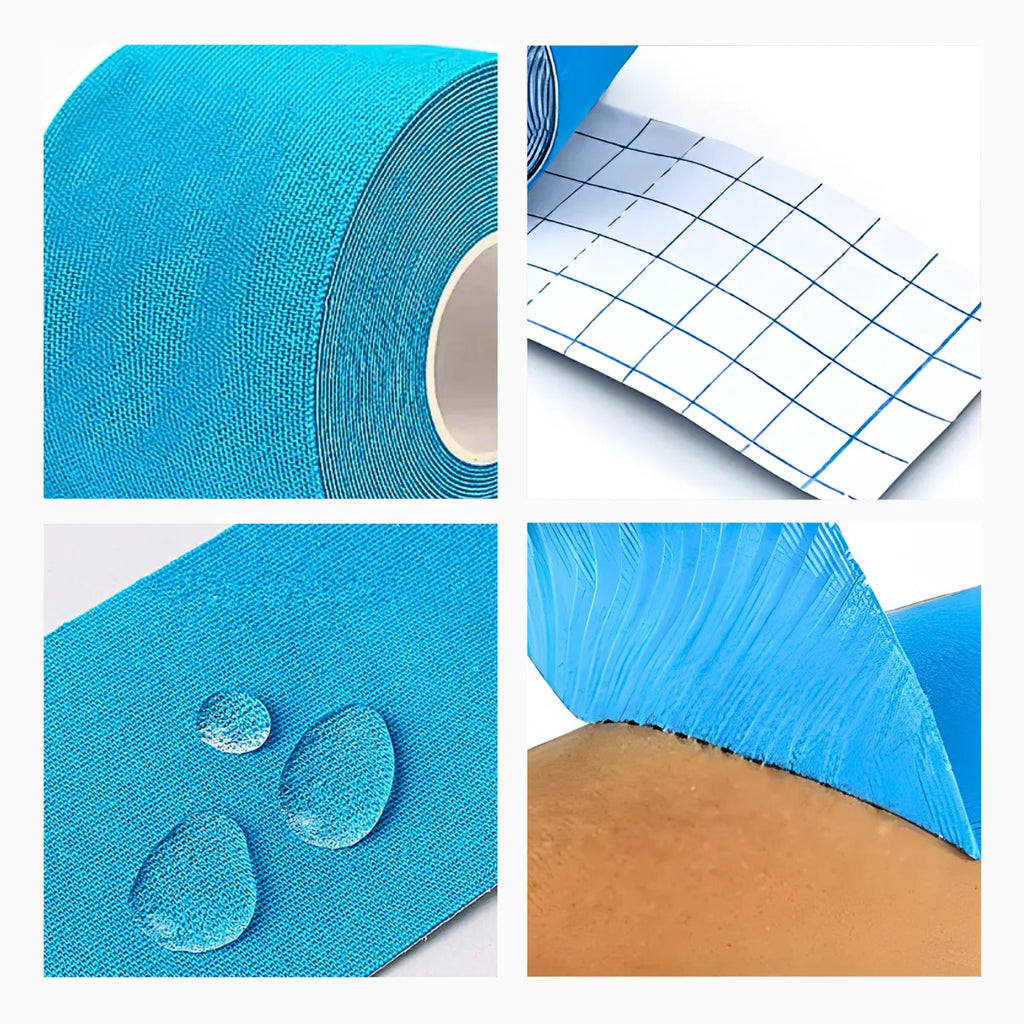 Graças à sua impermeabilidade, a fita mantém a aderência mesmo em ambientes úmidos ou durante atividades aquáticas, como banhos e treinos ao ar livre.