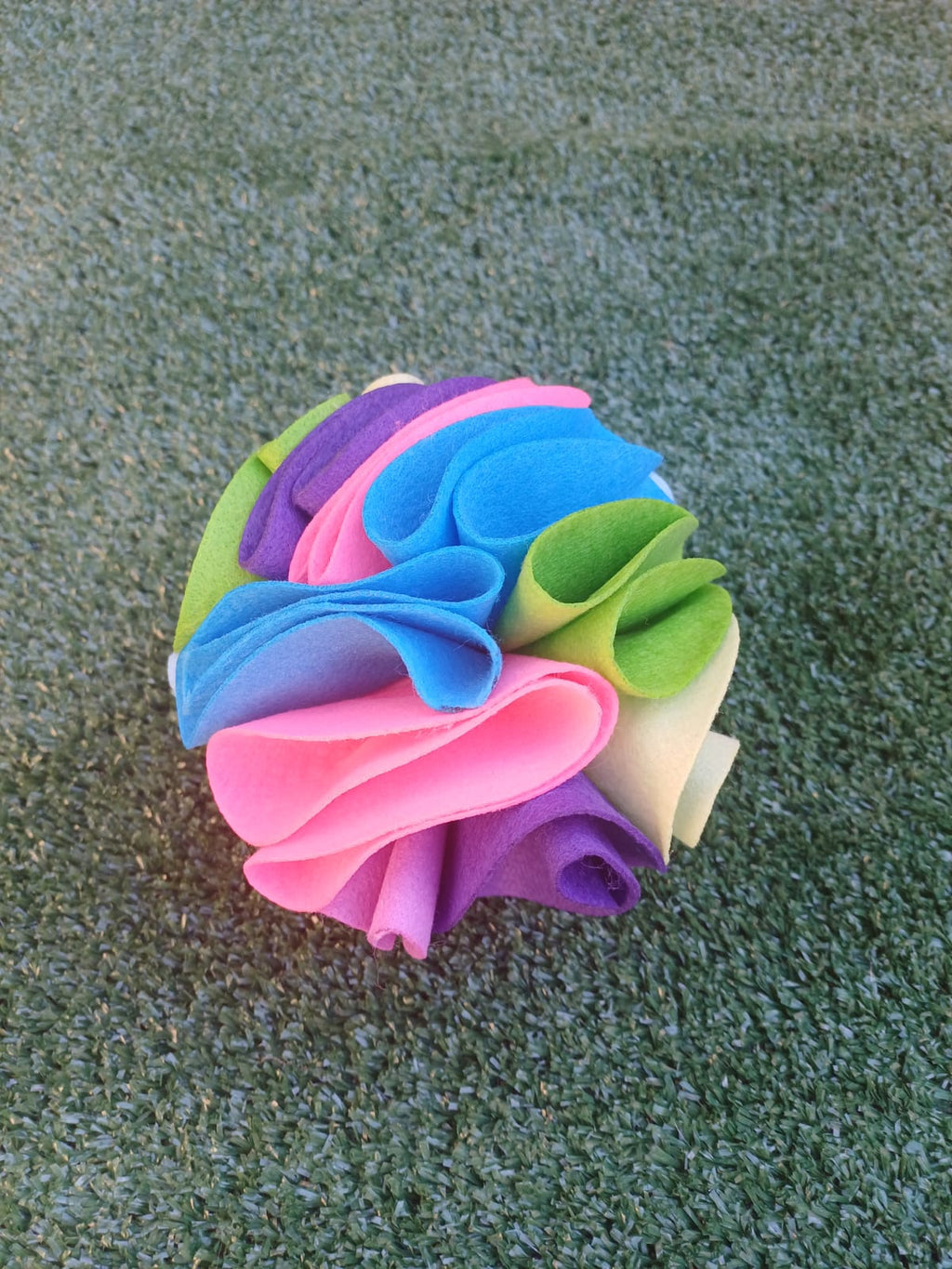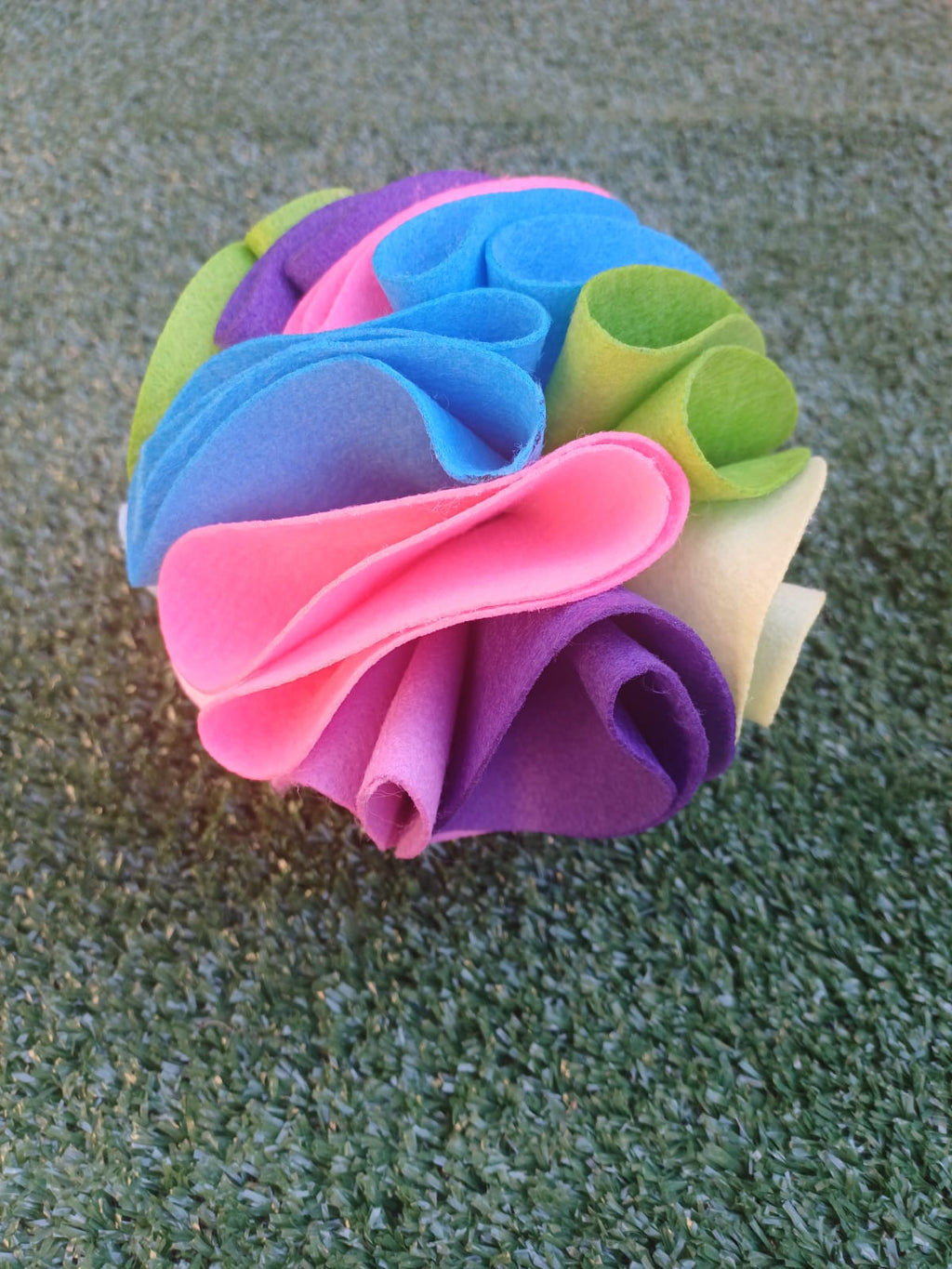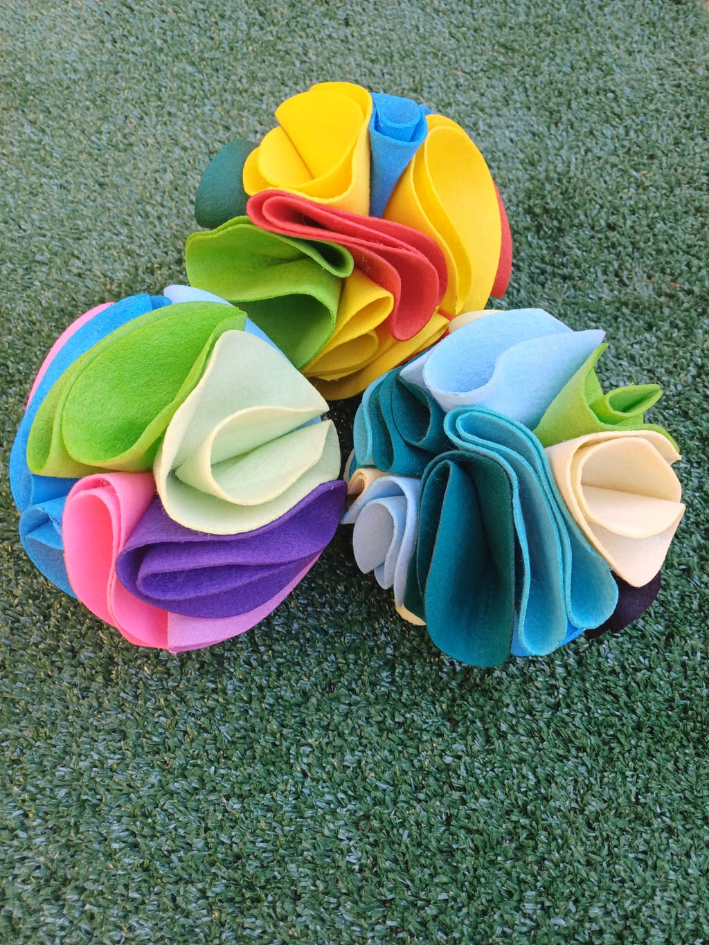 A Bola Interativa de Fuçar é feita de Feutro, tecido produzido com fibra de alta qualidade para um toque macio. O corte é feito com precisão a Laser sem fiapos ou pontas, afinal seu Pet merece todo conforto e segurança. O tecido utilizado é atóxico, antialérgico e antimofo, considerado seguro para o uso de diversas aplicações incluindo artesanato e decoração, garante durabilidade e segurança.